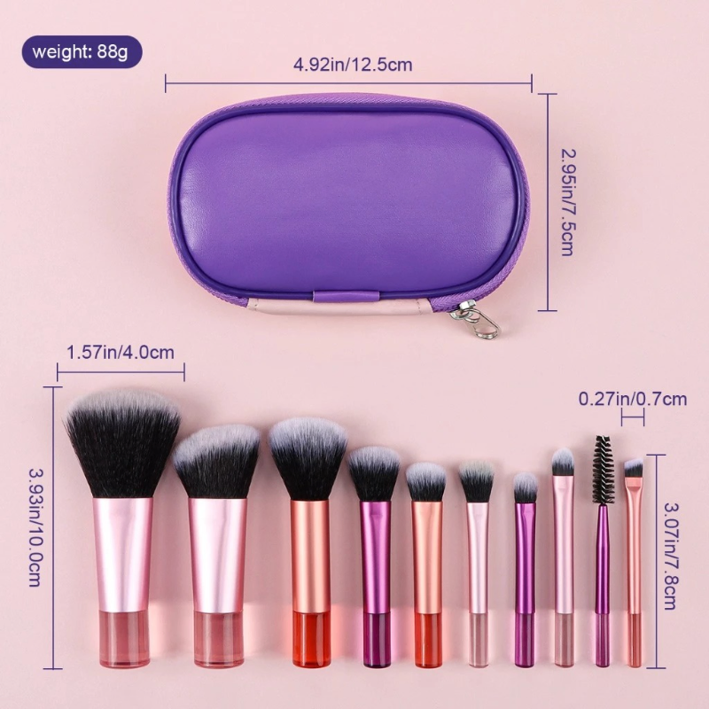 10 In 1 Mini Makeup Brush Sets With Bag