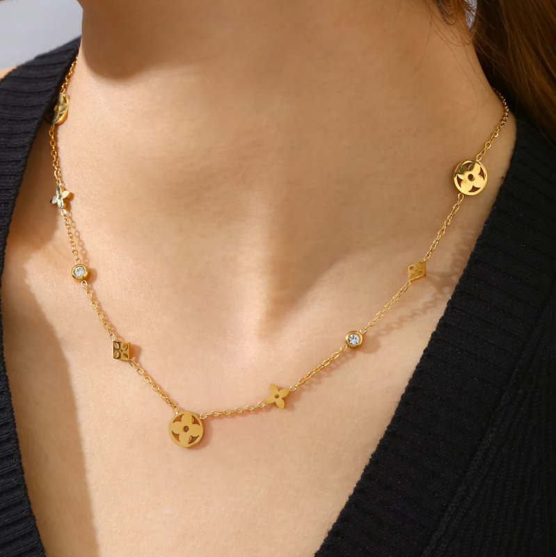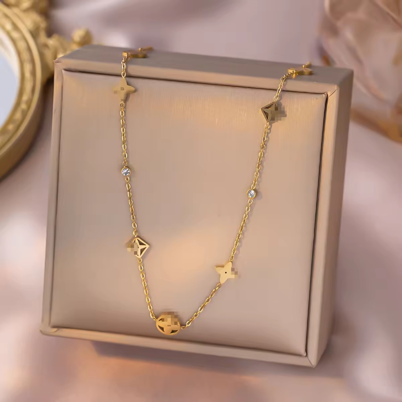 Stainless Steel Micro-inlay Zircon Four-leaf Necklace