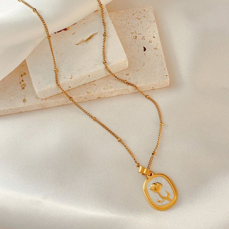 18k Gold Plated Stainless Steel Opal Bead Necklace