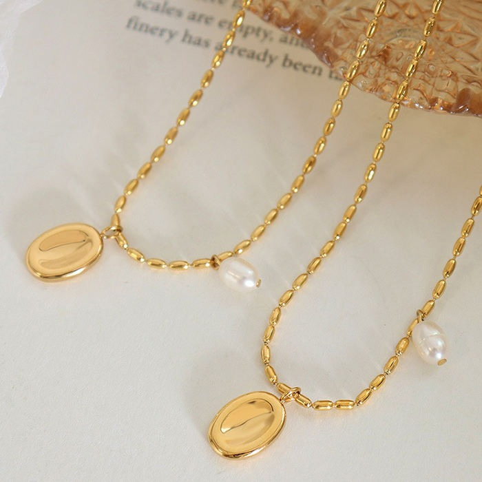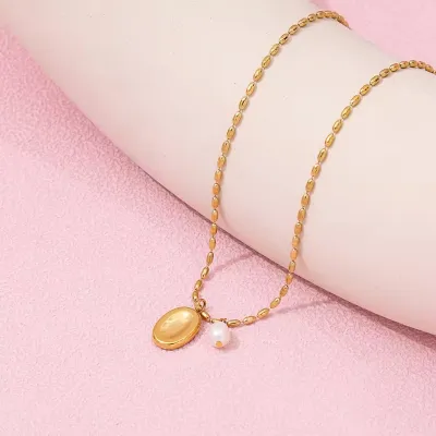 18k Gold Plated Stainless Steel Opal Bead Necklace