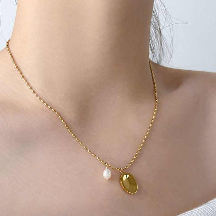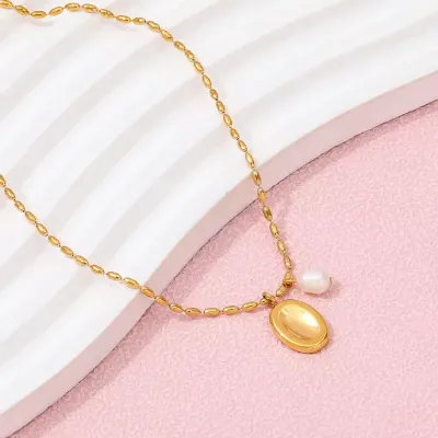 Stainless Steel Gold Plated Daisy Flower Pearl Beaded Necklace
