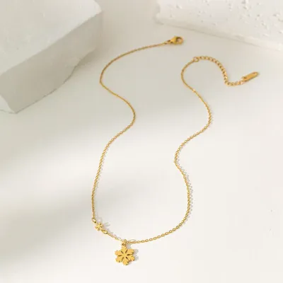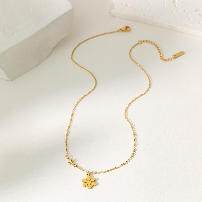 18k Gold Snowflake Stainless Steel Necklace
