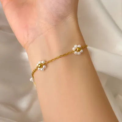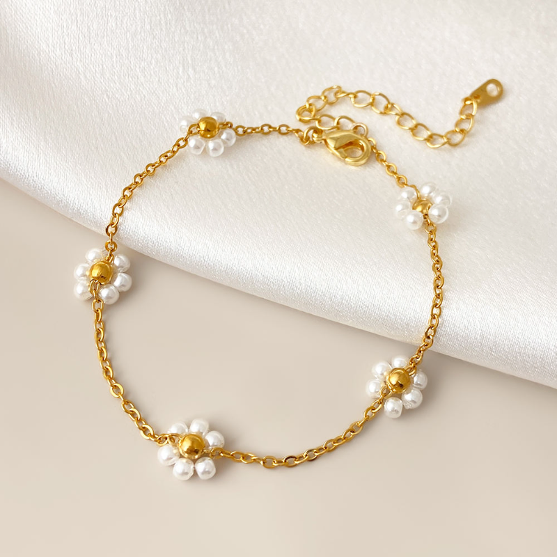 18K Gold Stainless Steel Pearl Beaded Bracelet
