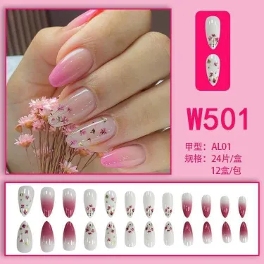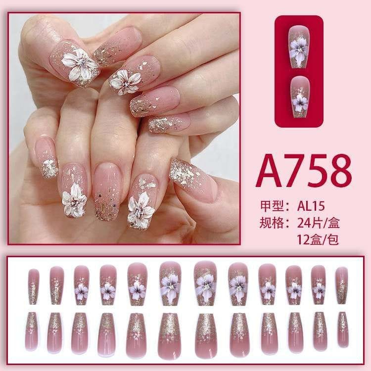 24 Pcs Trendy Fake Nails Set (1 Set)
