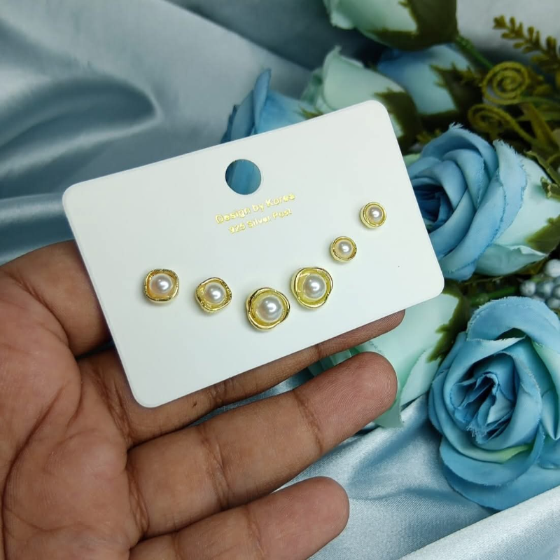 6 Pairs Vintage Pearl Hoop Earrings Set