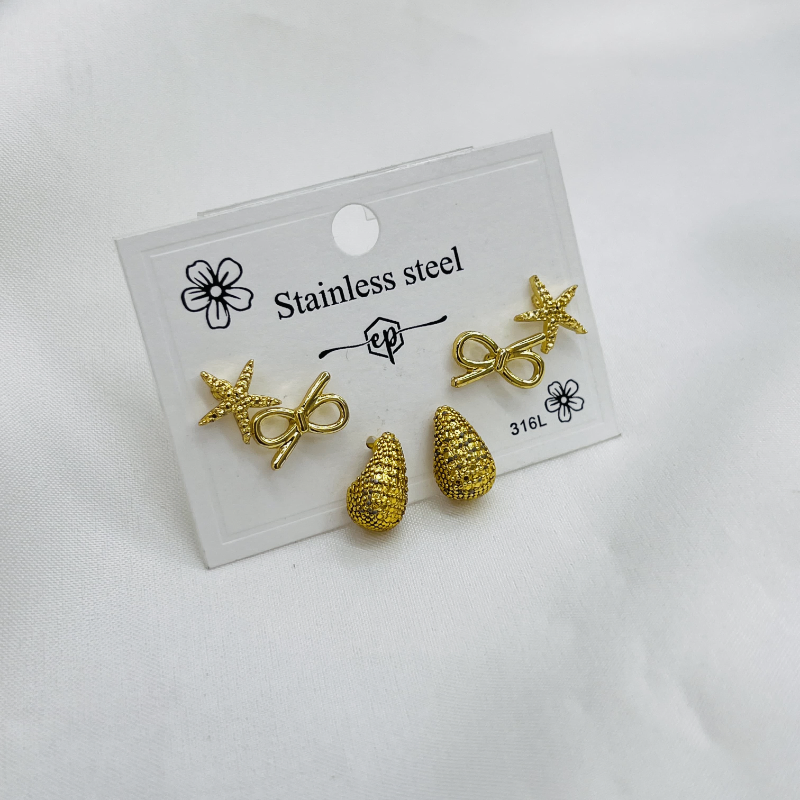 3 Pairs Starfish Stud Earring Sets (1 Pata)