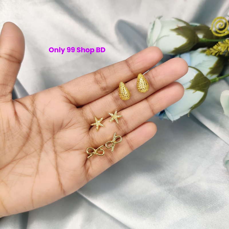 3 Pairs Starfish Stud Earring Sets (1 Pata)