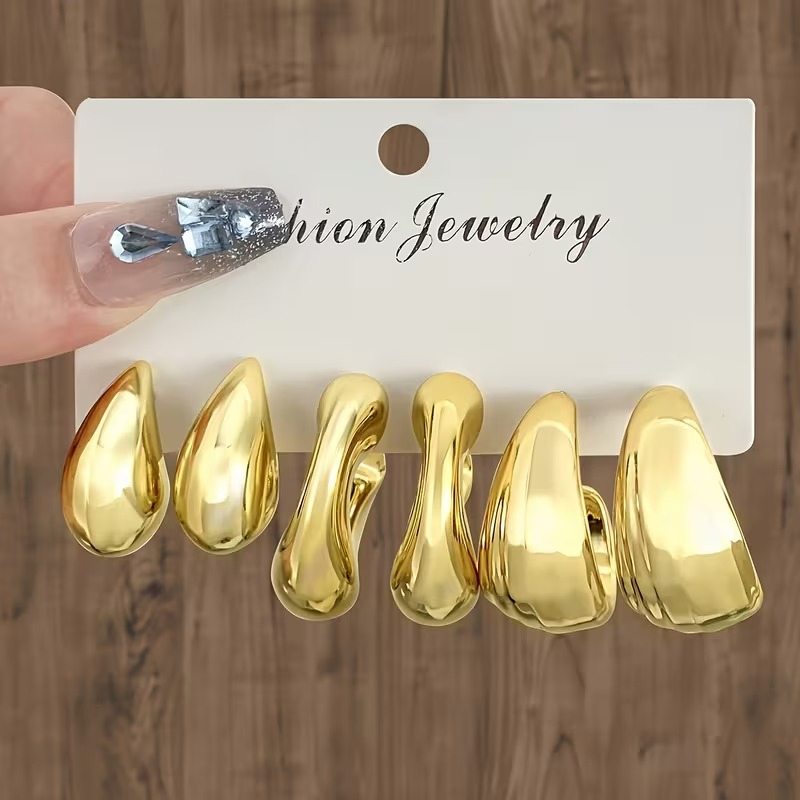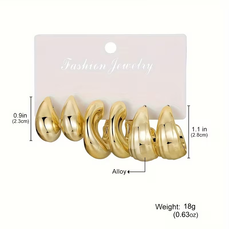 3 Pair C-shaped Water Droplet Earrings Set