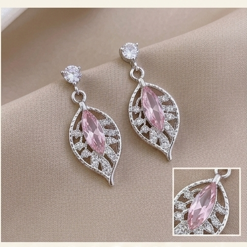 3 Pcs Pink Crystal Leaf Necklace Set