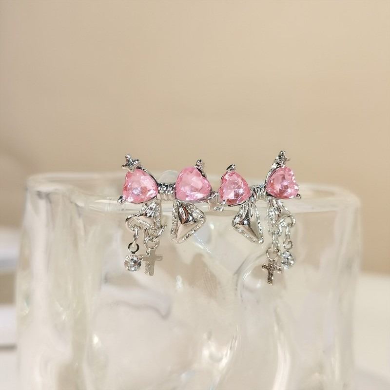 3 Pcs Stylish Bow Pink Rhinestones Necklace Set