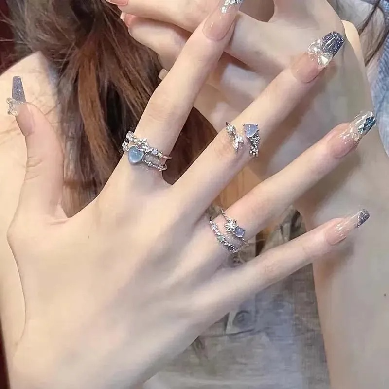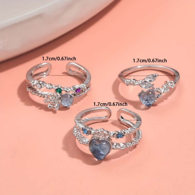 6 Pcs Flower Crystal Imitation Pearl Open Rings Set