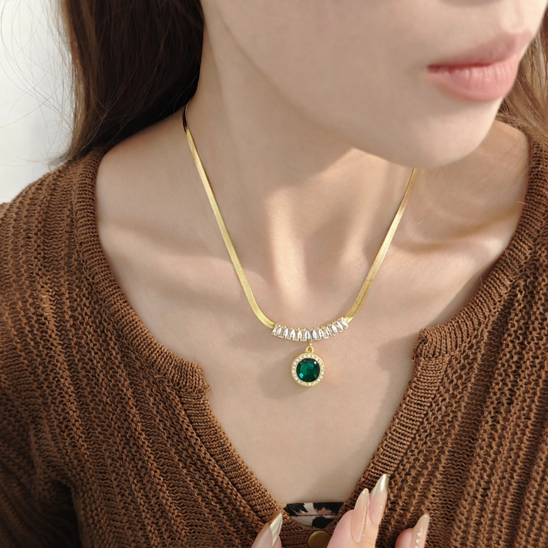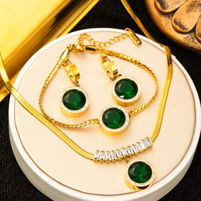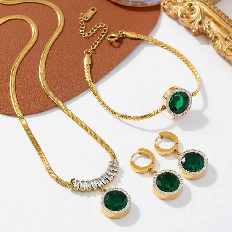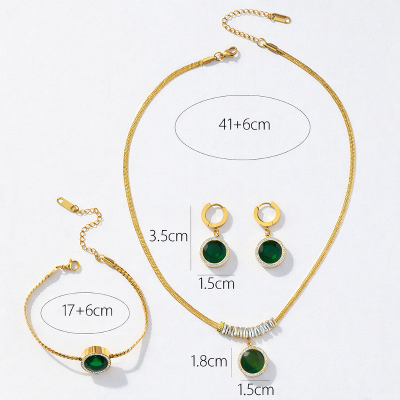 4 Pcs Vintage Round Green Necklace Set