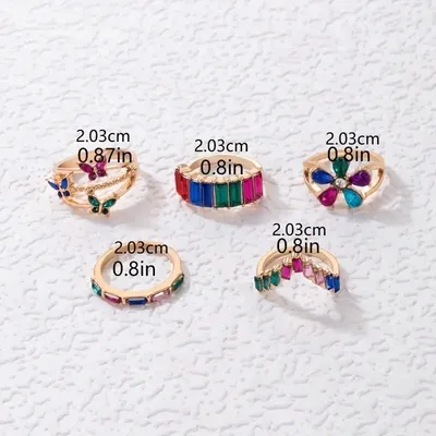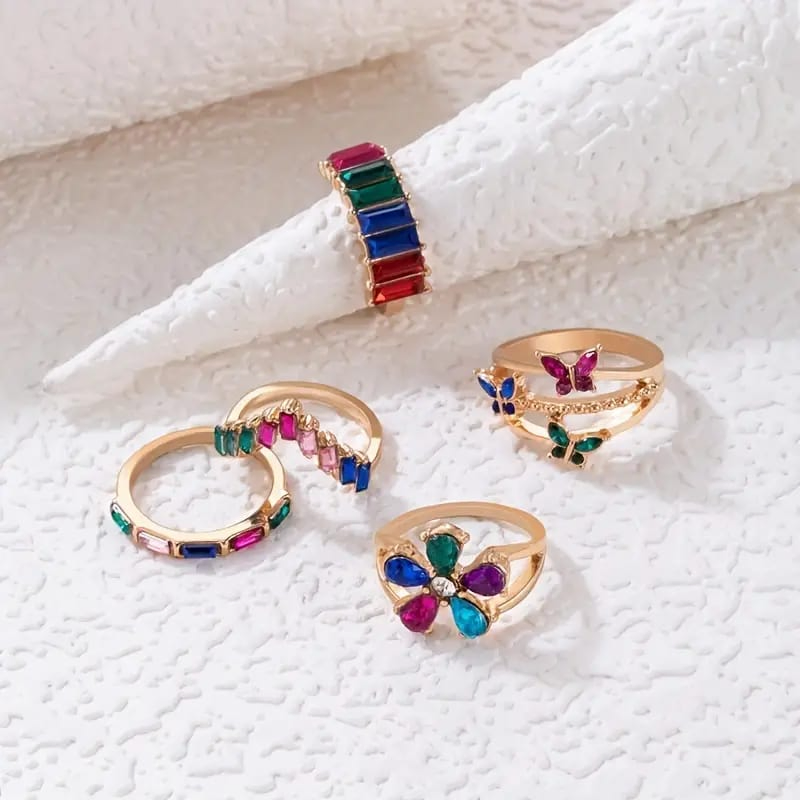 5 Pcs Colorful Geometric Butterfly Finger Ring Set