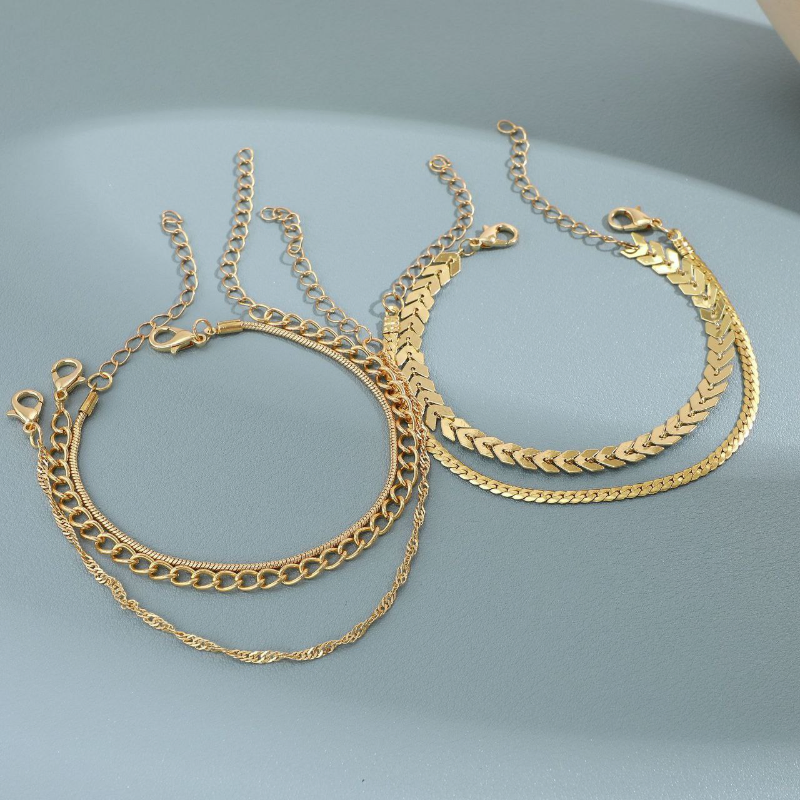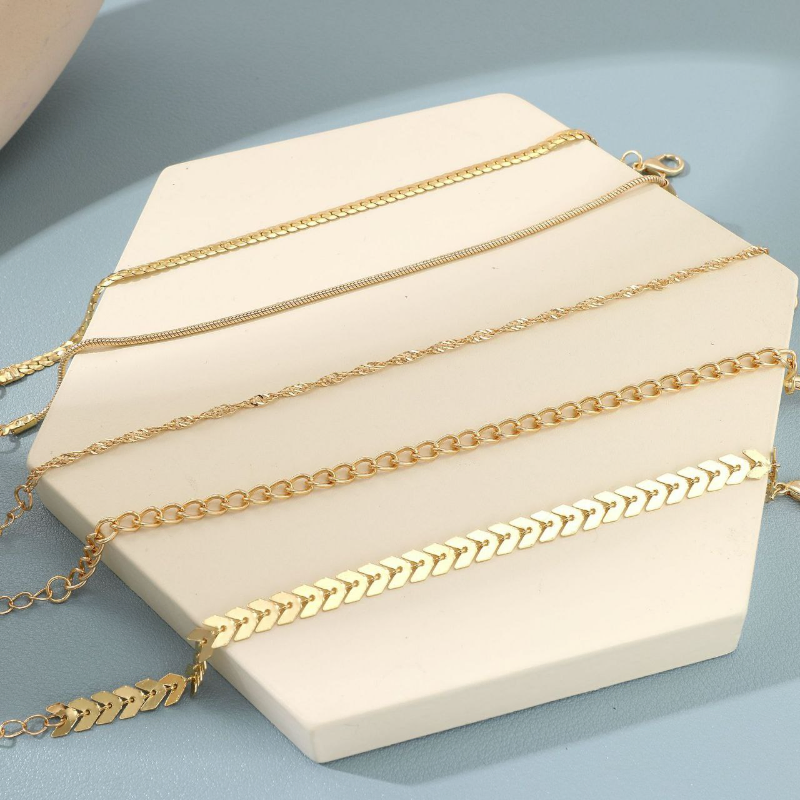 5 Pcs Vintage Flat Snake Chain Bracelet Set