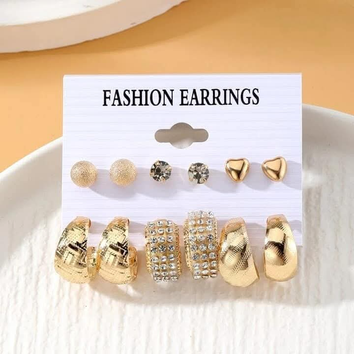6 Pairs Elegant Fashion Love C Shaped Earrings Set