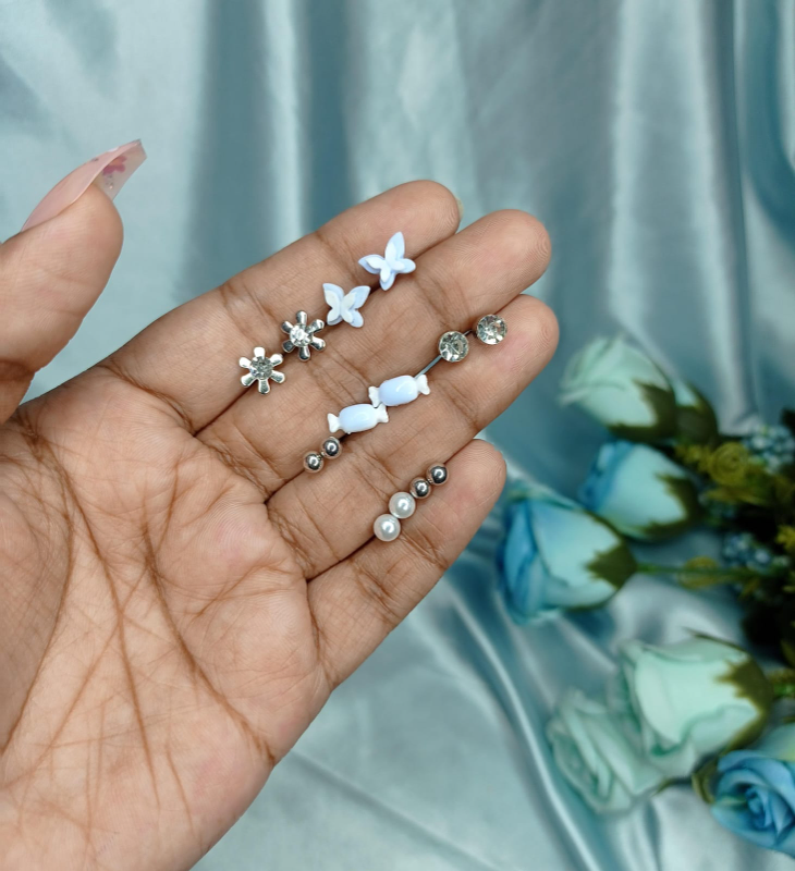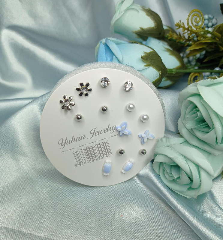 7 pair Fashionable Blue Candy Butterfly Cute Earrings Set (1 pata)
