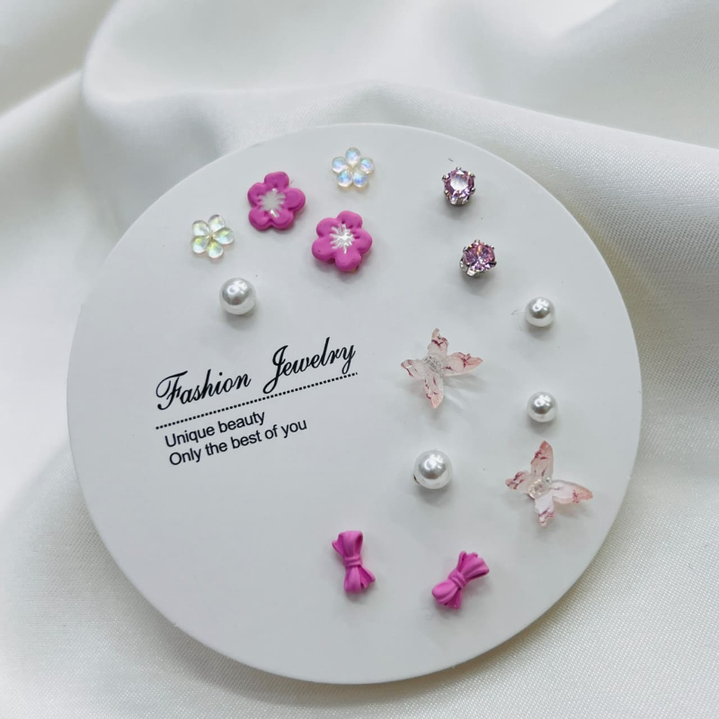 7 Pairs Sweet Pink Mini Stud Earring Set(1Pata)