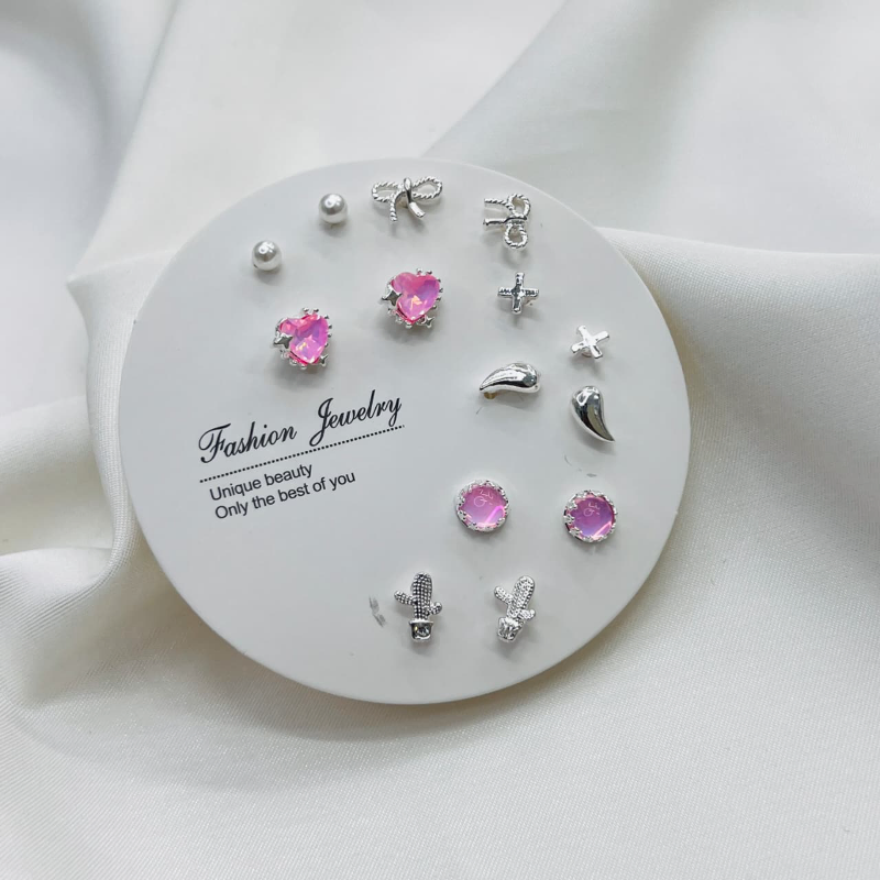 7 Pairs Sweet Pink Mini Stud Earring Set(1Pata)