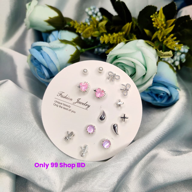 7 Pairs Star Love Stud Earring Set (1 Pata)