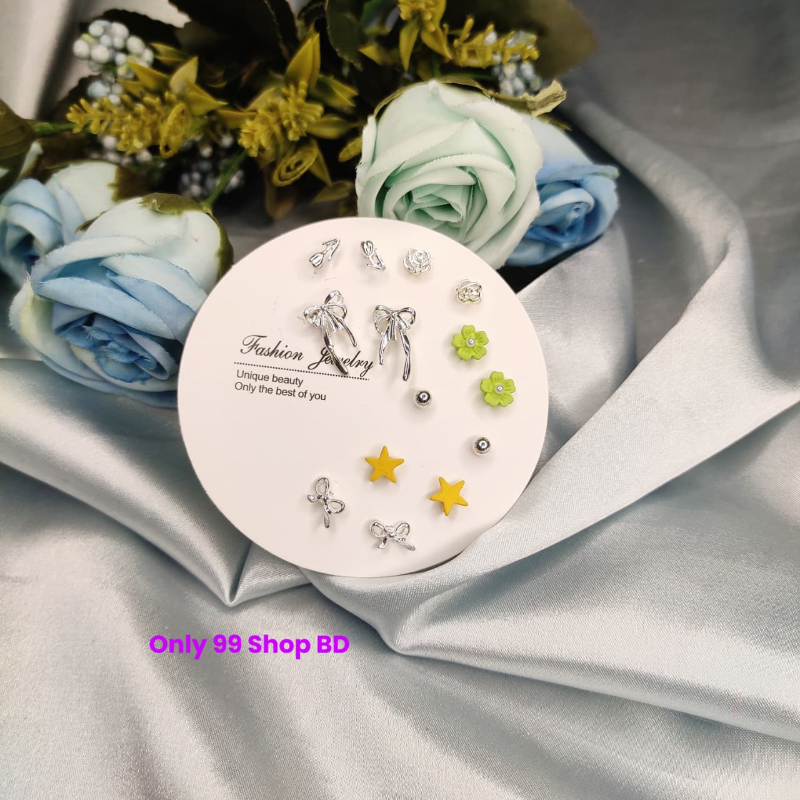7 Pairs Yellow Star Stud Earring Set (1 Pata)