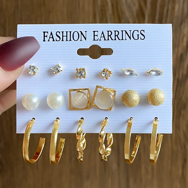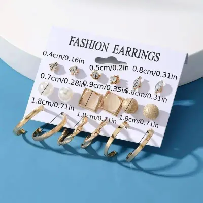 9 Pairs Pearl Stud C Shaped Hoop Earrings Set