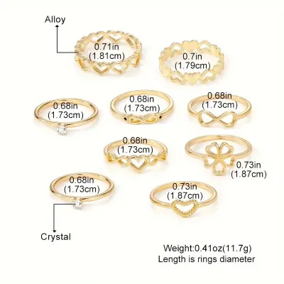 8 Pcs Gold Color Bowknot Finger Rings Set