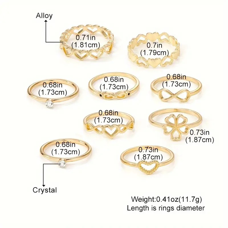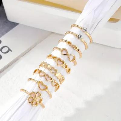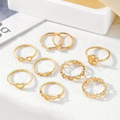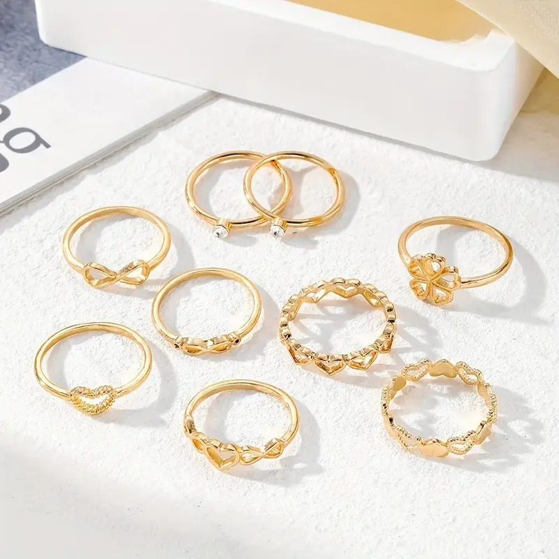 9 Pcs Simple Elegant Golden Alloy Ring Set