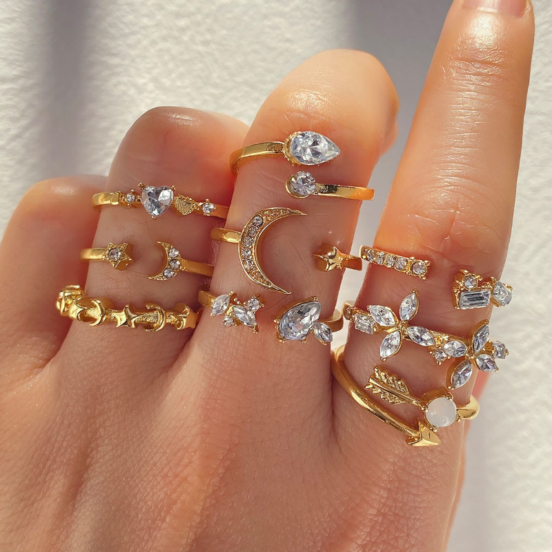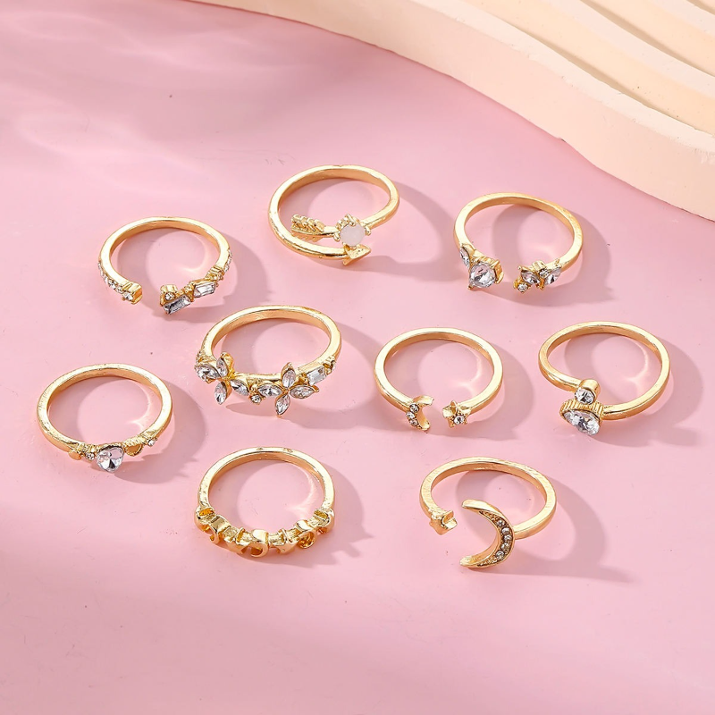 9 Pcs Vintage Zirconia Love Finger Ring Set
