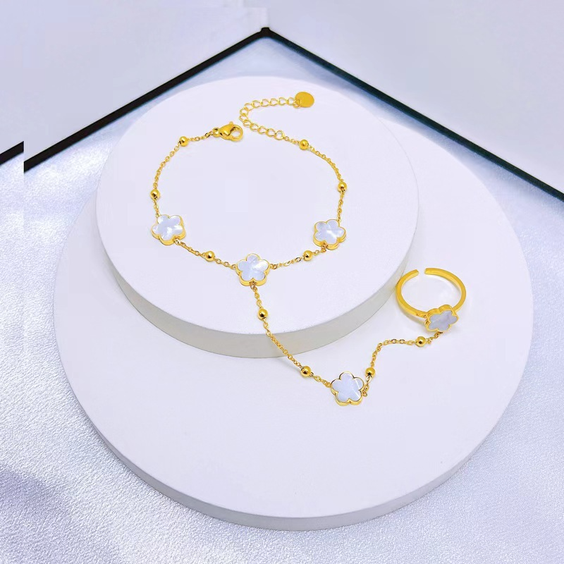 Clover Shell Link Ring Bracelets