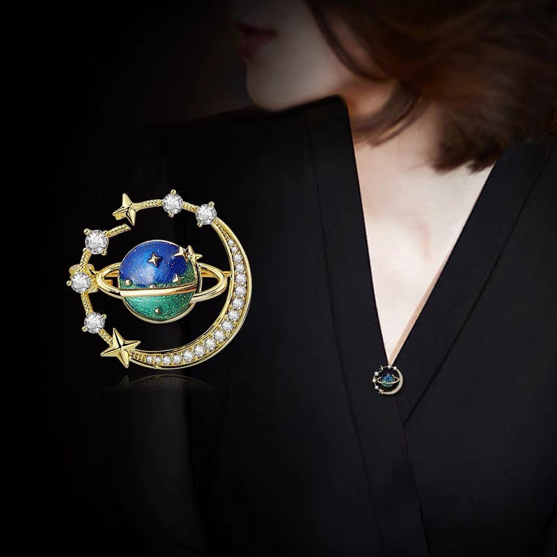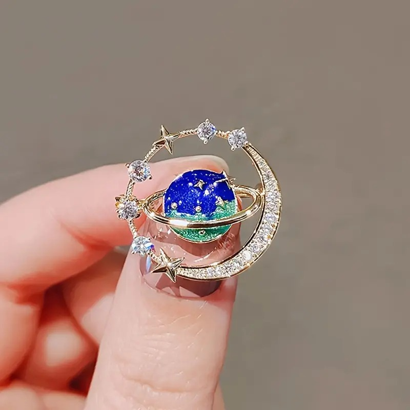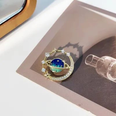 Cute Earth Moon Star Blue Planet Hijab Brooch