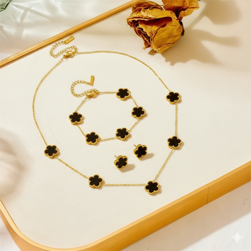 Elegant Five-leaf Clover Flower Necklace Set