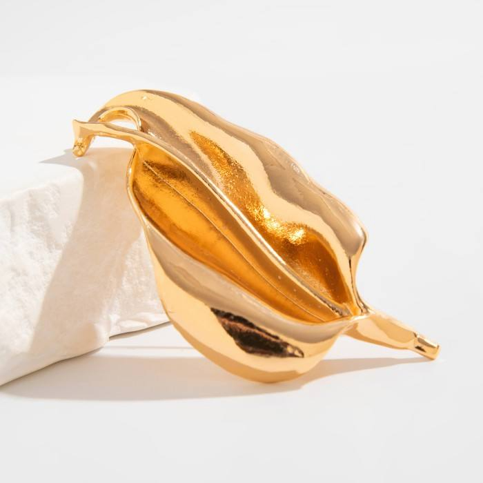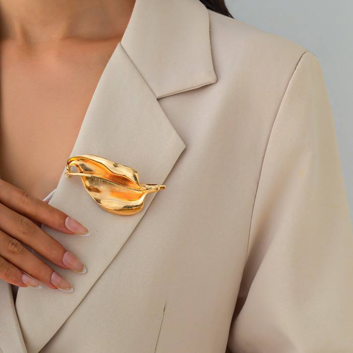 Elegant Pink Peony Flower Leaf Pearl Brooch