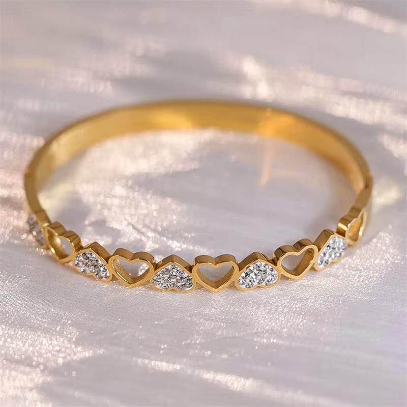 Elegant Zircon Heart Patchwork Cuff Bracelet