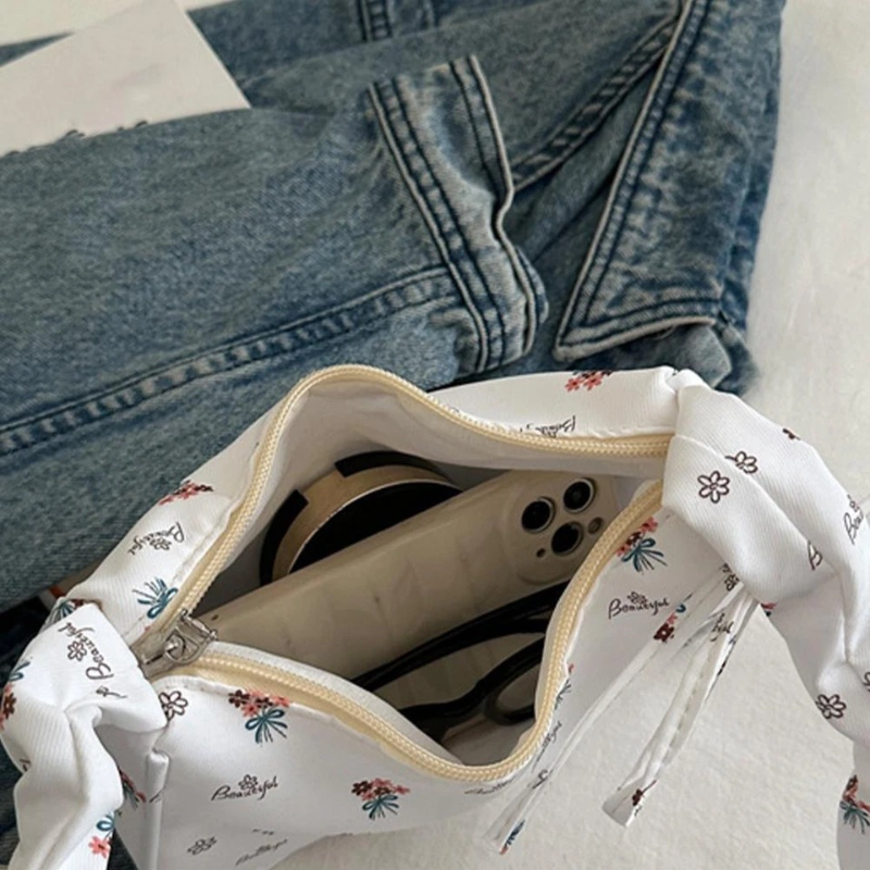 Korean Style Floral Bow Print Shoulder Bag