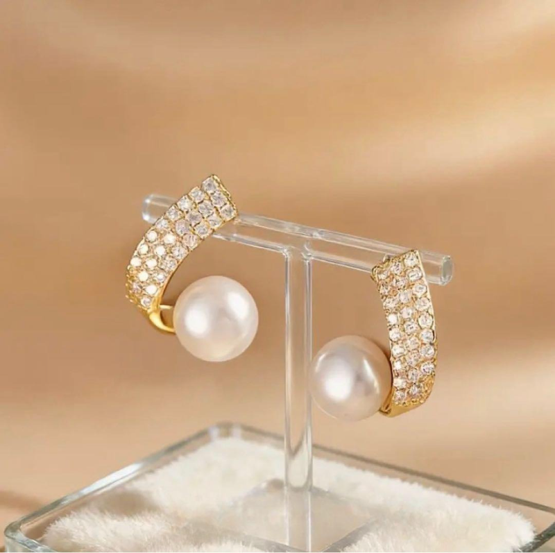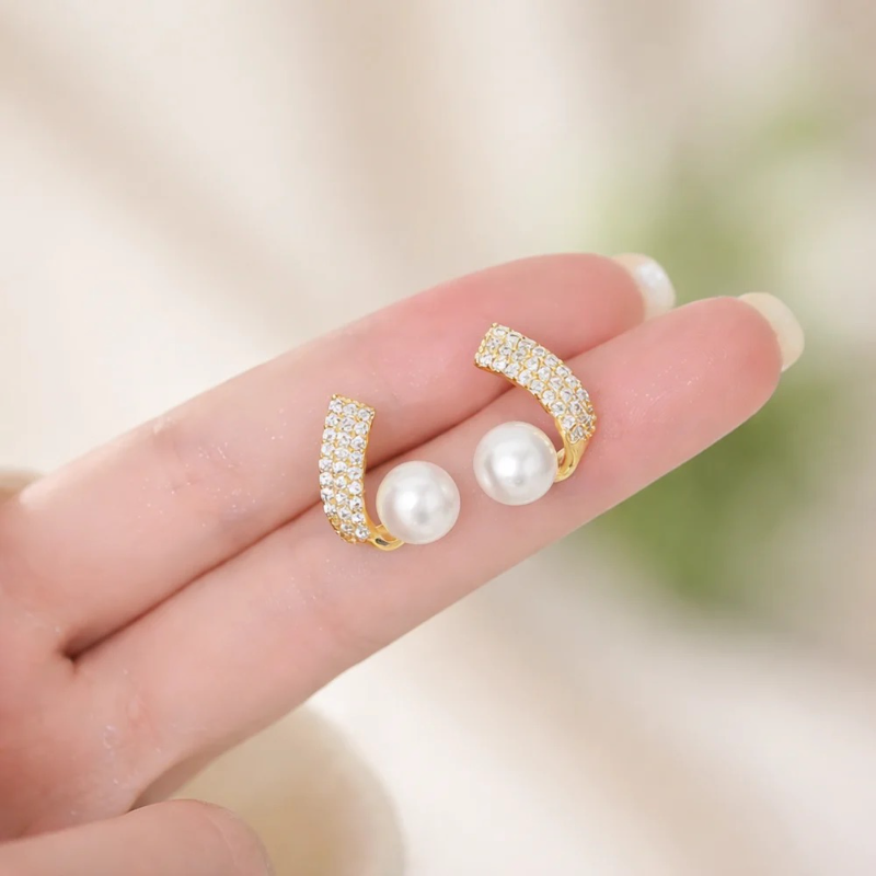 Geometric Cubic Zirconia & Pearl Inlay Stud Earrings