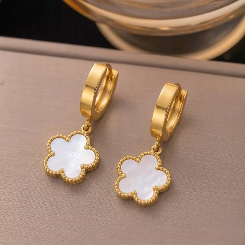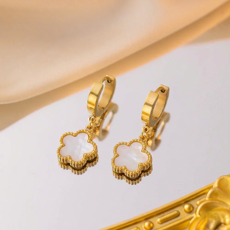 Geometric Cubic Zirconia & Pearl Inlay Stud Earrings