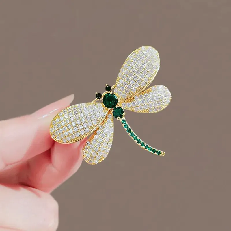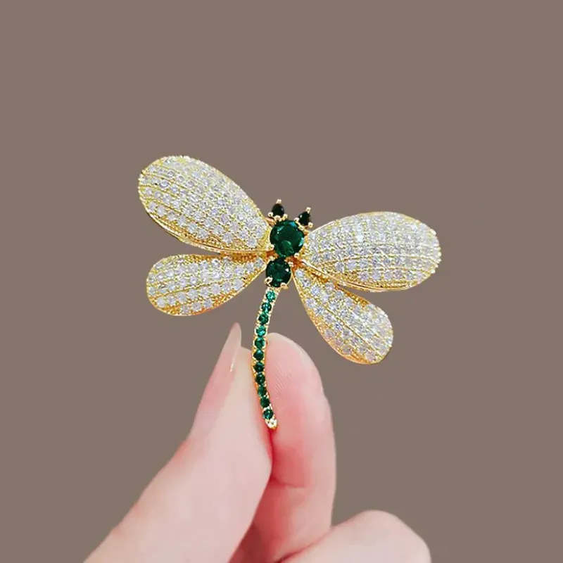 Green Crystal Dragonfly Hijab Brooch / Hijab Pin