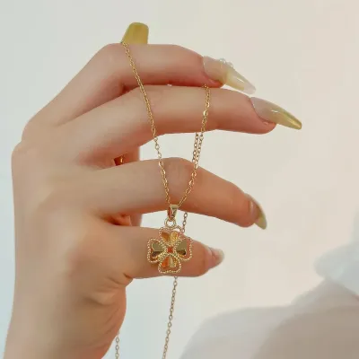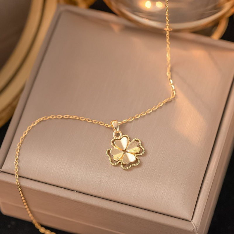 Stainless Steel Micro-inlay Zircon Four-leaf Necklace