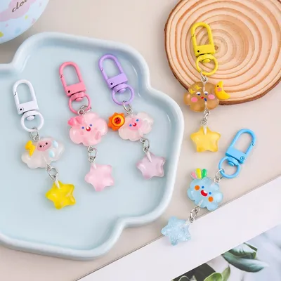 3 Pcs Sweet Colorful Jelly Flower Keychain
