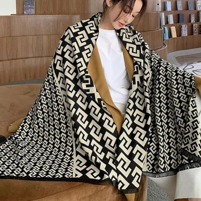 Korean Style Double-Sided Plaid Double C Letter Shawl