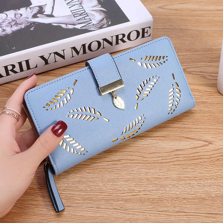 Ladies PU Leather Leaf Design Zipper Lock Wallet