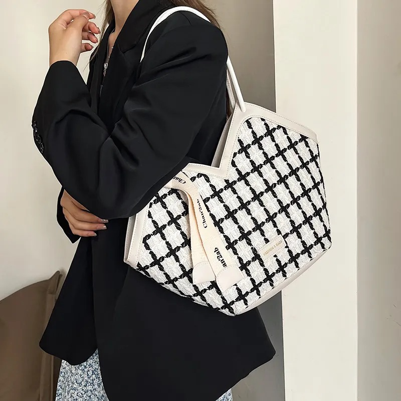 Large Capacity Plaid Shoulder Tote Bag