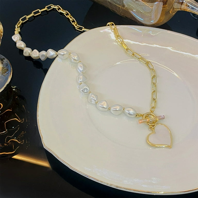 Love Heart Chain Pearl Pendent Necklace