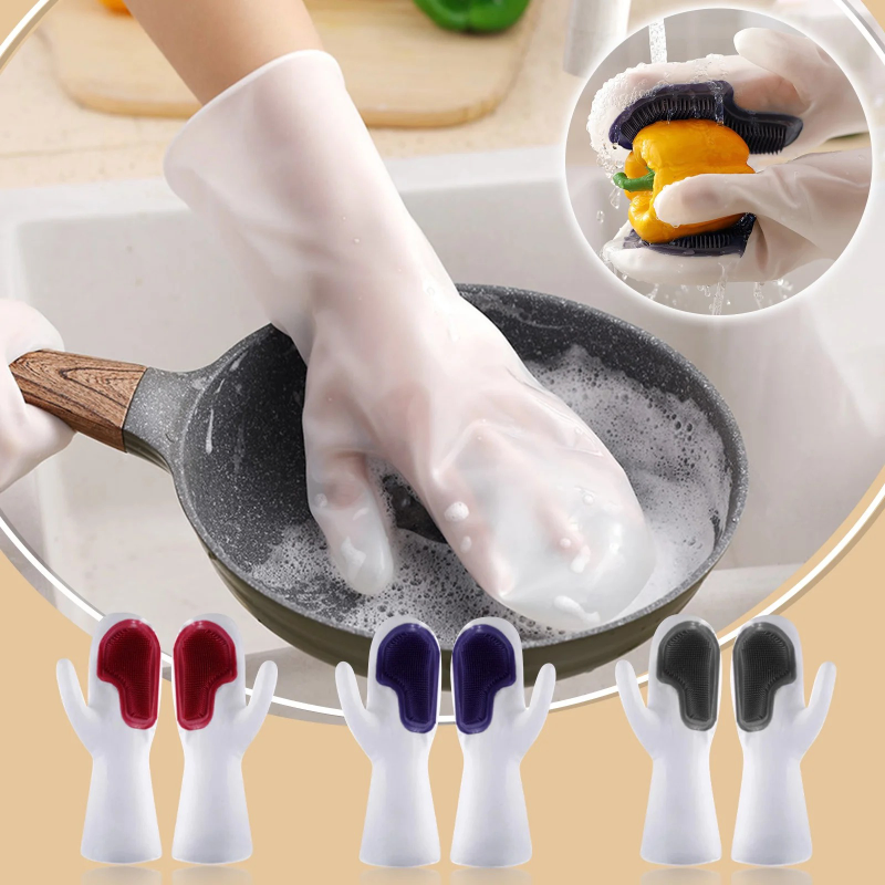 Magic Silicone Rubber Dish Washing Gloves (1 Pair)