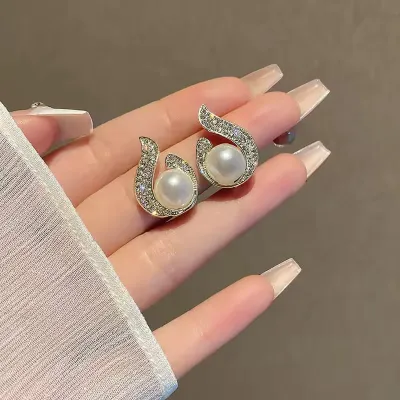 New Trendy Shiny Crystal Pearl Stud Earrings
