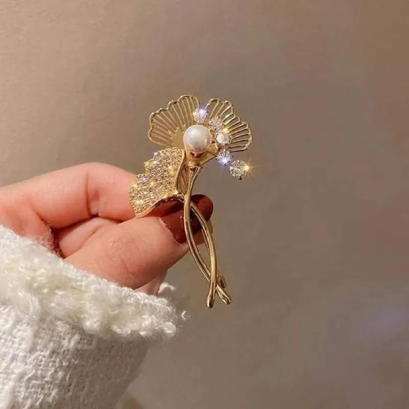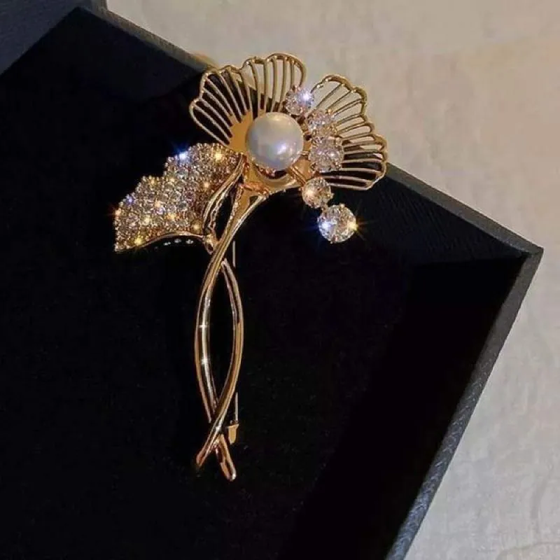 Red Lily With Faux Pearl Hijab Brooch / Pin