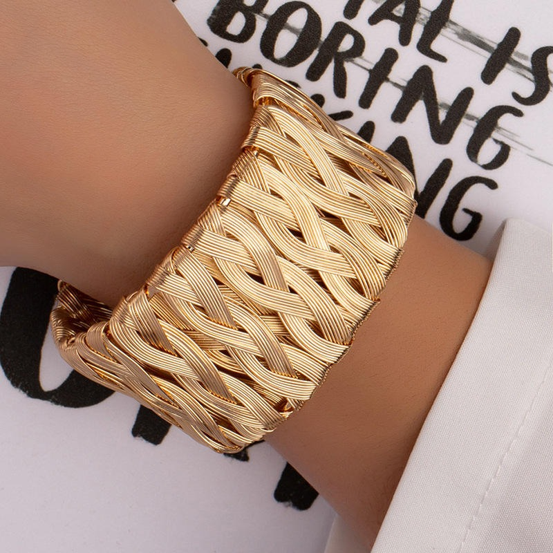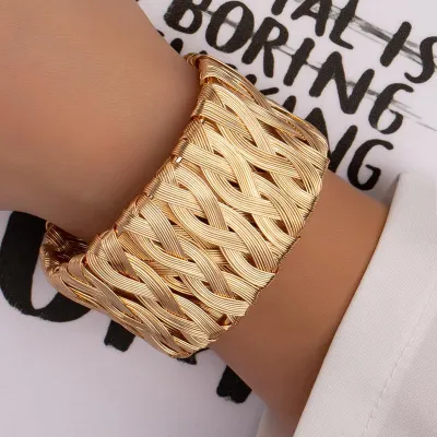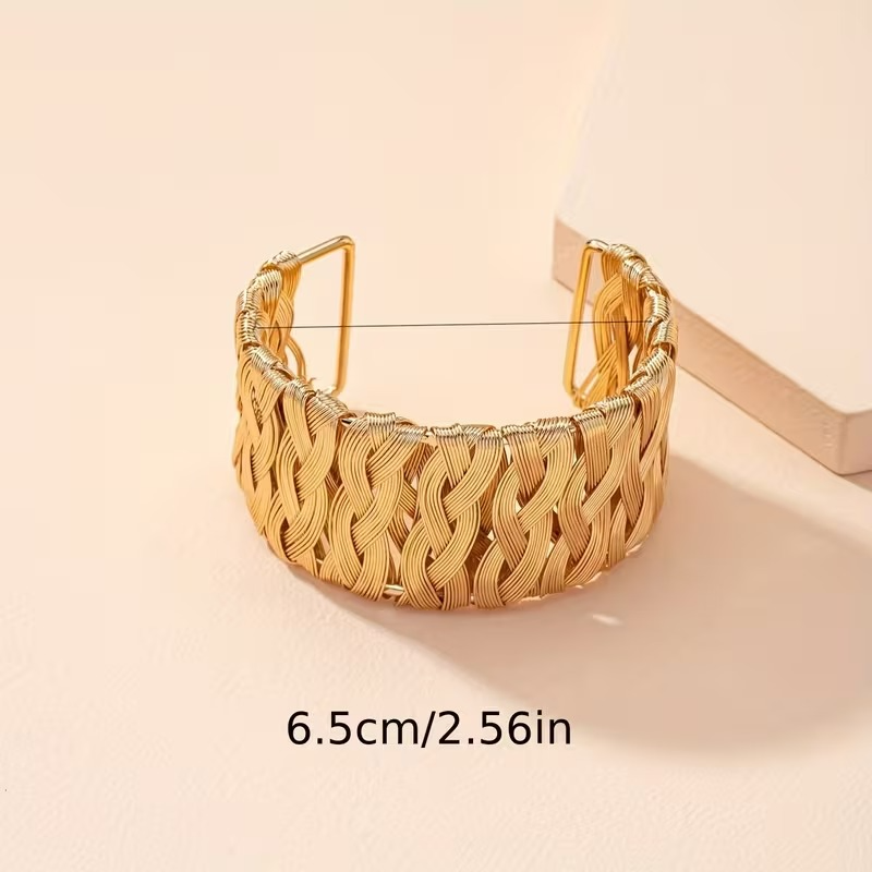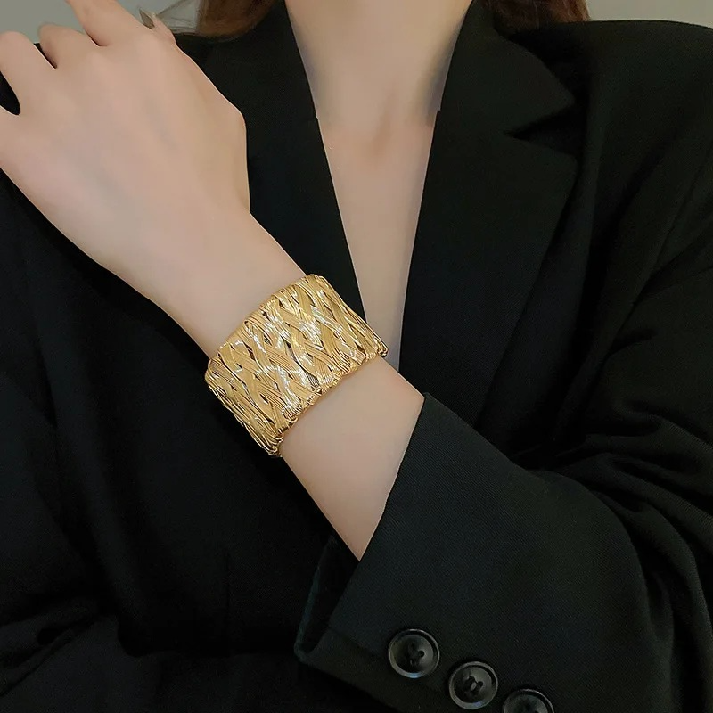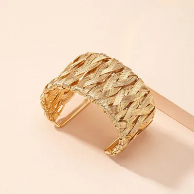 Gold Crystal Rhinestone Wire Cuff Bracelet