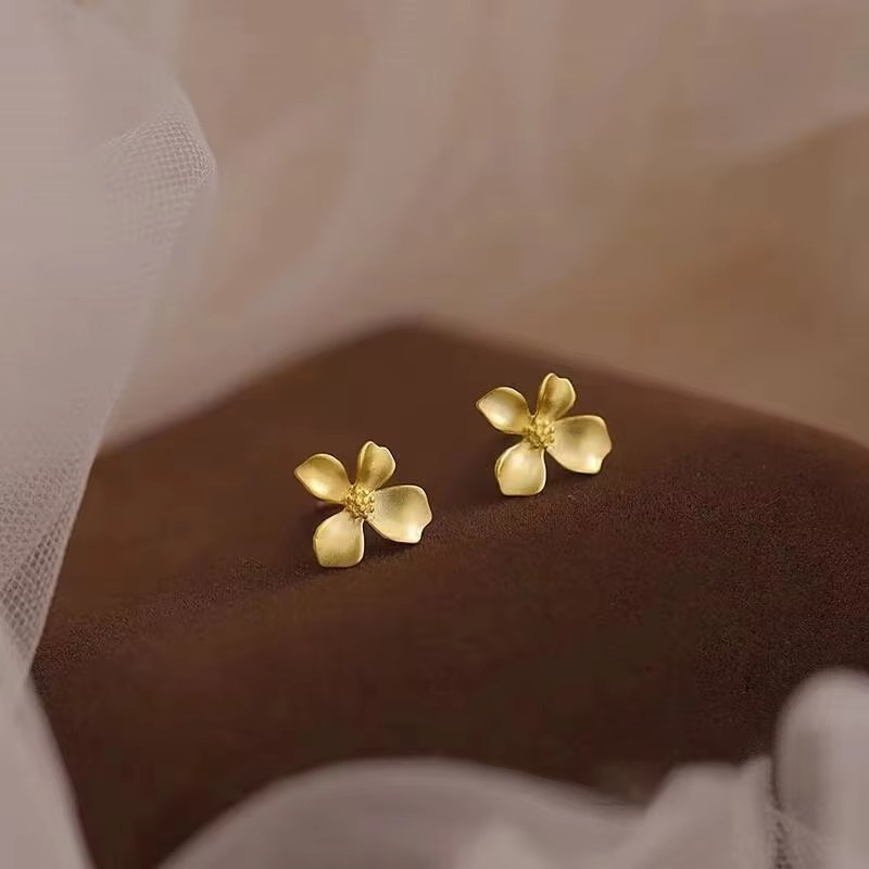 Retro Golden Flower Stud Earrings