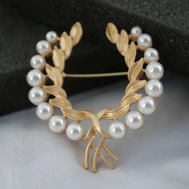 Round Pearl Wheat Ear Hijab Brooch / Hijab Pin