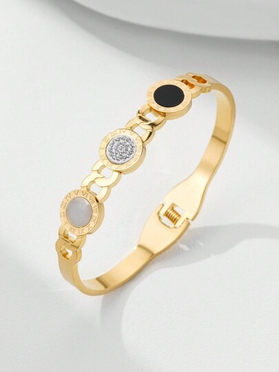 Stainless Steel Circle Black Shell Bracelet